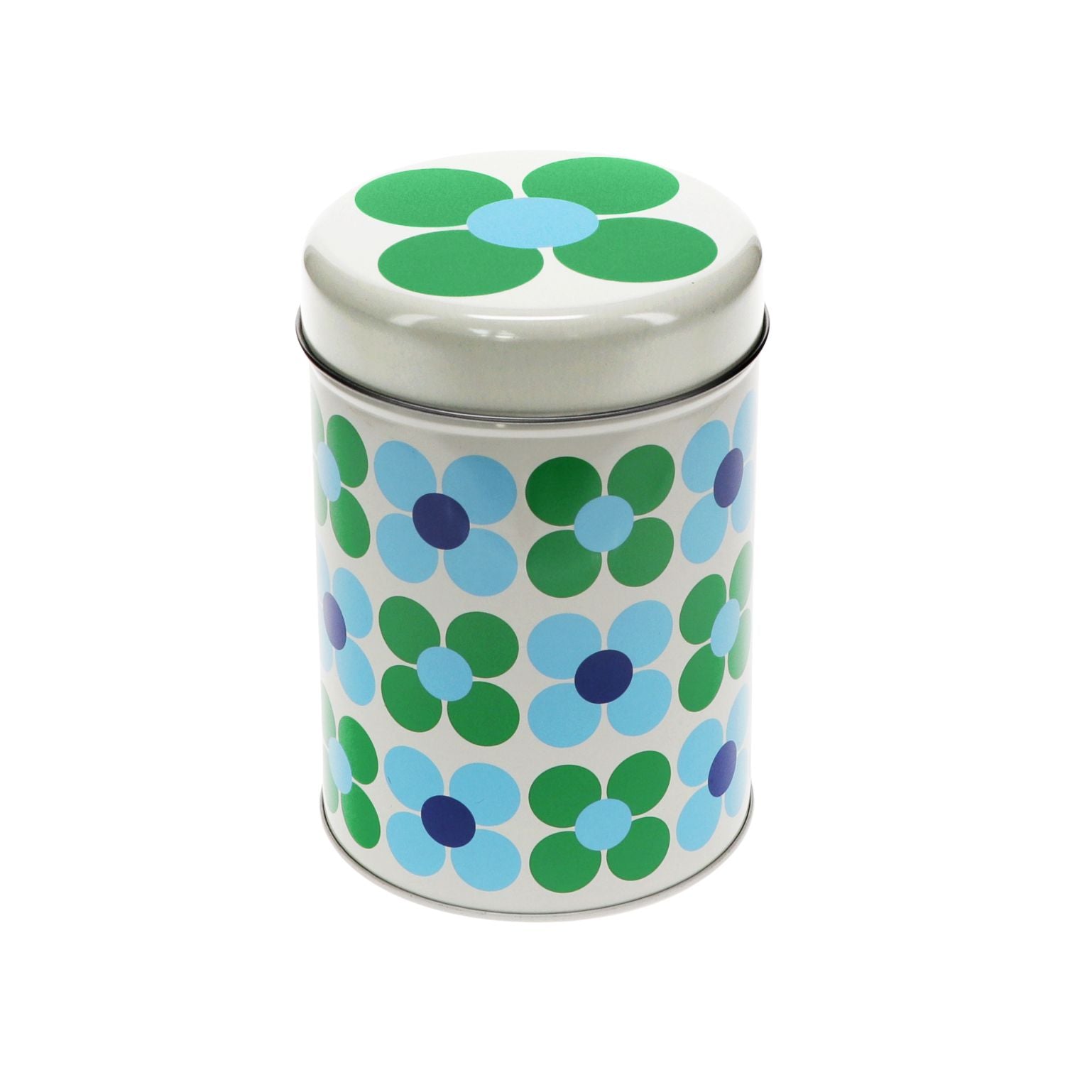 Canister Storage Tin Blue & Green Daisy