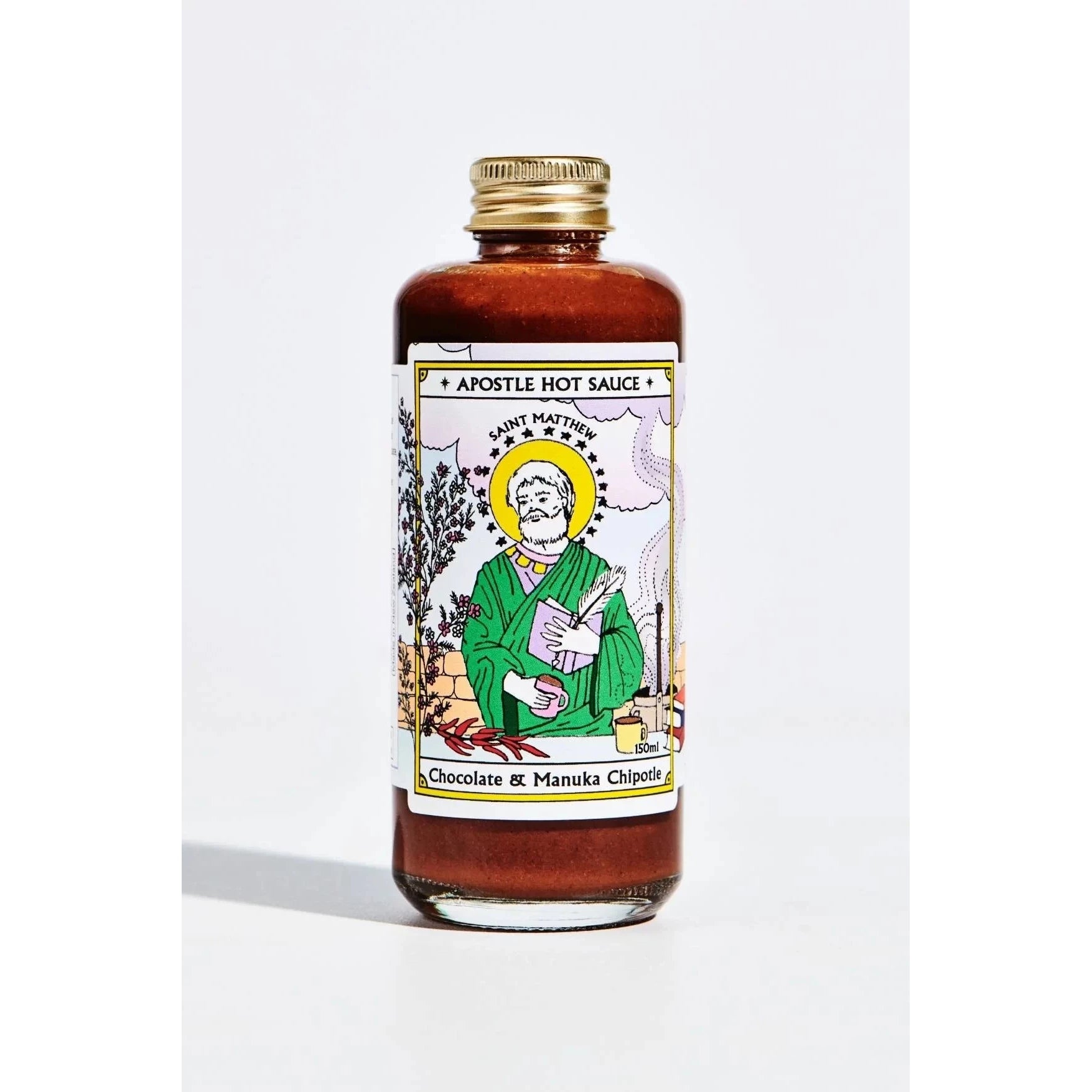 Organic apple cider vinegar, manuka smoked chipotles (9.5%), roasted onion, roasted capsicum, water, tomato paste, direct sourced cacao powder (4.78%), salt, brown sugar, garlic powder, spices.