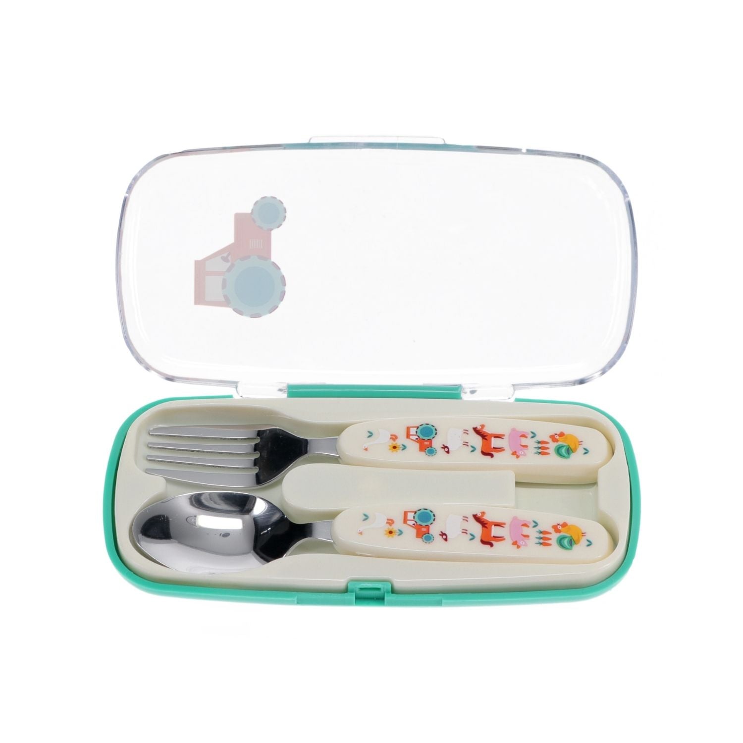 This charming Farmyard Cutlery Set is specially designed for children, featuring a delightful mix of colourful farmyard animals and familiar farm icons on the handles. The set includes a fork and spoon, each about 13.5cm long, perfectly sized for little hands to use comfortably. Packaged in a convenient carrying case measuring 15cm × 7.6cm × 1.9cm, it’s ideal for mealtimes at home, picnics, or family outings. Made from food-safe materials and dishwasher safe for easy cleaning, this set combines fun and practicality to encourage young ones to enjoy eating independently.