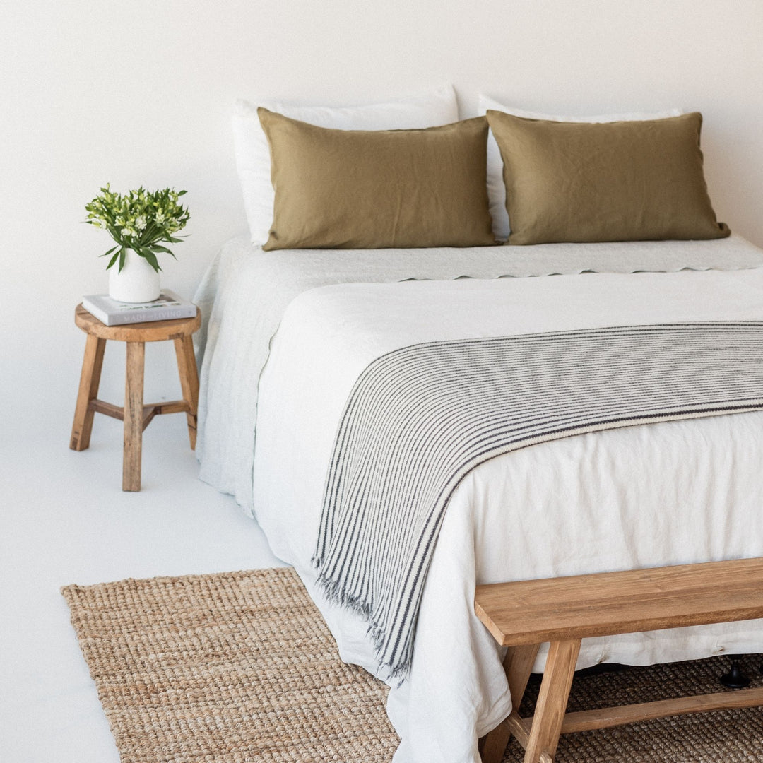 Elegance meets raw, natural beauty in this sustainably- produced throw blanket made in New Zealand, with homegrown lambswool from Kate’s Hawke’s Bay farm. Foxtrot Home’s textural throw blankets are finished with a raw, organic, tufted edge on two ends and immaculate sewn seams on the sides.