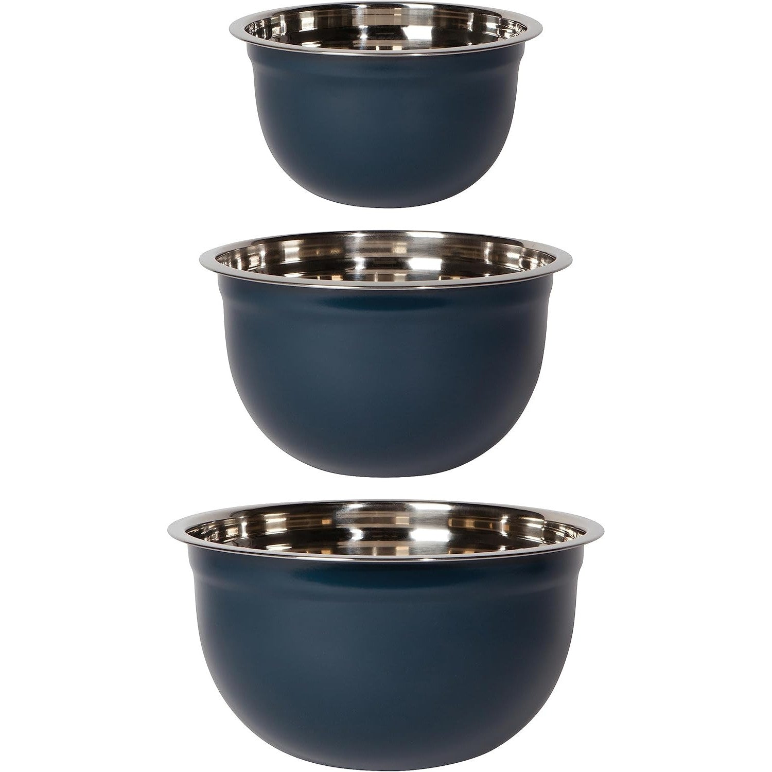 Matte finish exterior with Steel interior mixing bowls: Set of 3 for all your baking and cooking needs. Prep, mix, store and serve. These beautiful bowls are durable and will complement your kitchen.