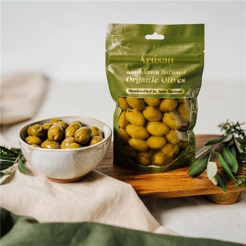Organic green olives, infused with New Zealand grown kawakawa, native herbs and premium olive oil. Store in a cool dark place for up to 12 months and enjoy when those olive cravings hit!