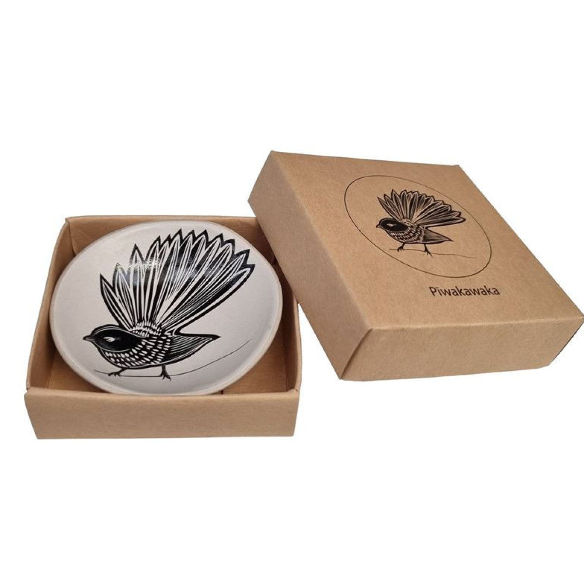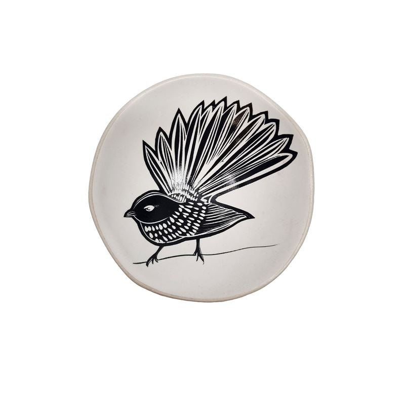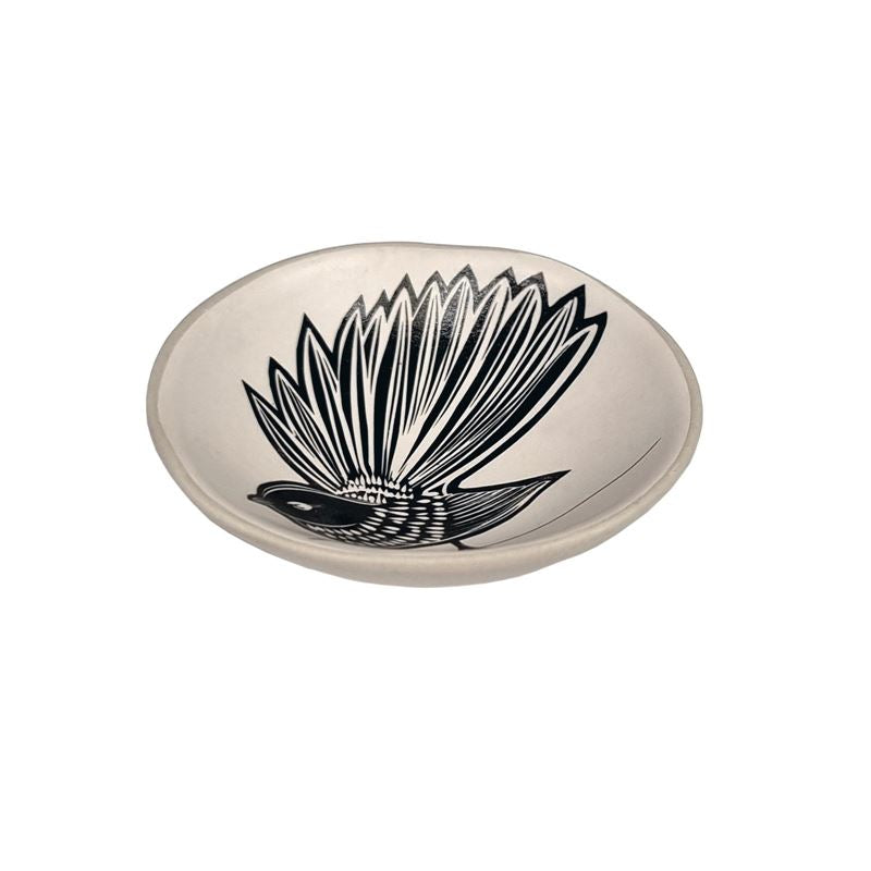 Made from white porcelain, inside semi-gloss clear glaze with decal and unglazed outside.