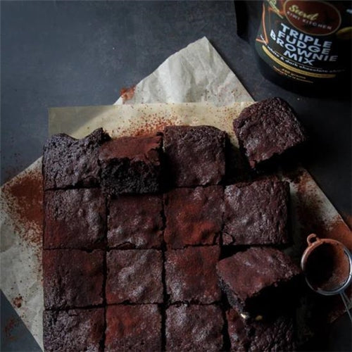 Our award winning Triple Chocolate Brownie Mix is like no other-- they're everything a home-baked treat should be, and much more. Rich and gooey with a crispy top and edges. They're super easy to make. One bowl, 5 minutes to oven ready. Just add eggs and either butter or oil. Total time: Approx 30 minutes.